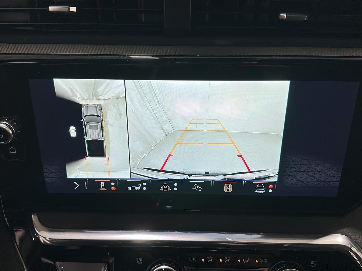 - Allows driver to see inside the cargo bed on the infotainment display to help with 5th wheel or gooseneck hitching and to check cargo
